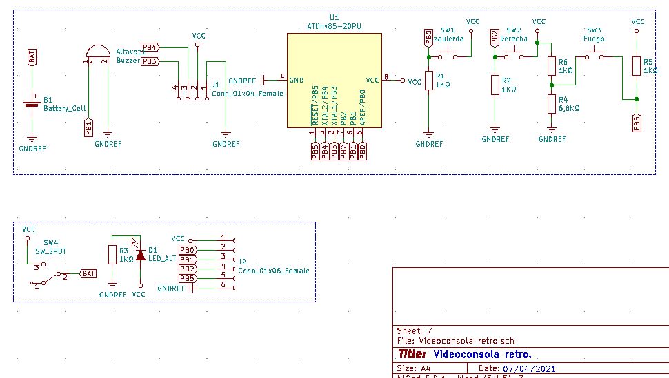 En la imagen, vista del esquemático de la videoconsola en el Eeschema diseñado por Pablo Corrales Gualda.