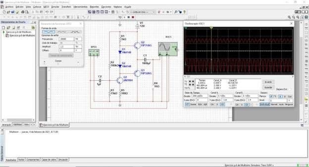 En la imagen, diseño de un amplificador mediante NI Multisim por Pablo Corrales Gualda.