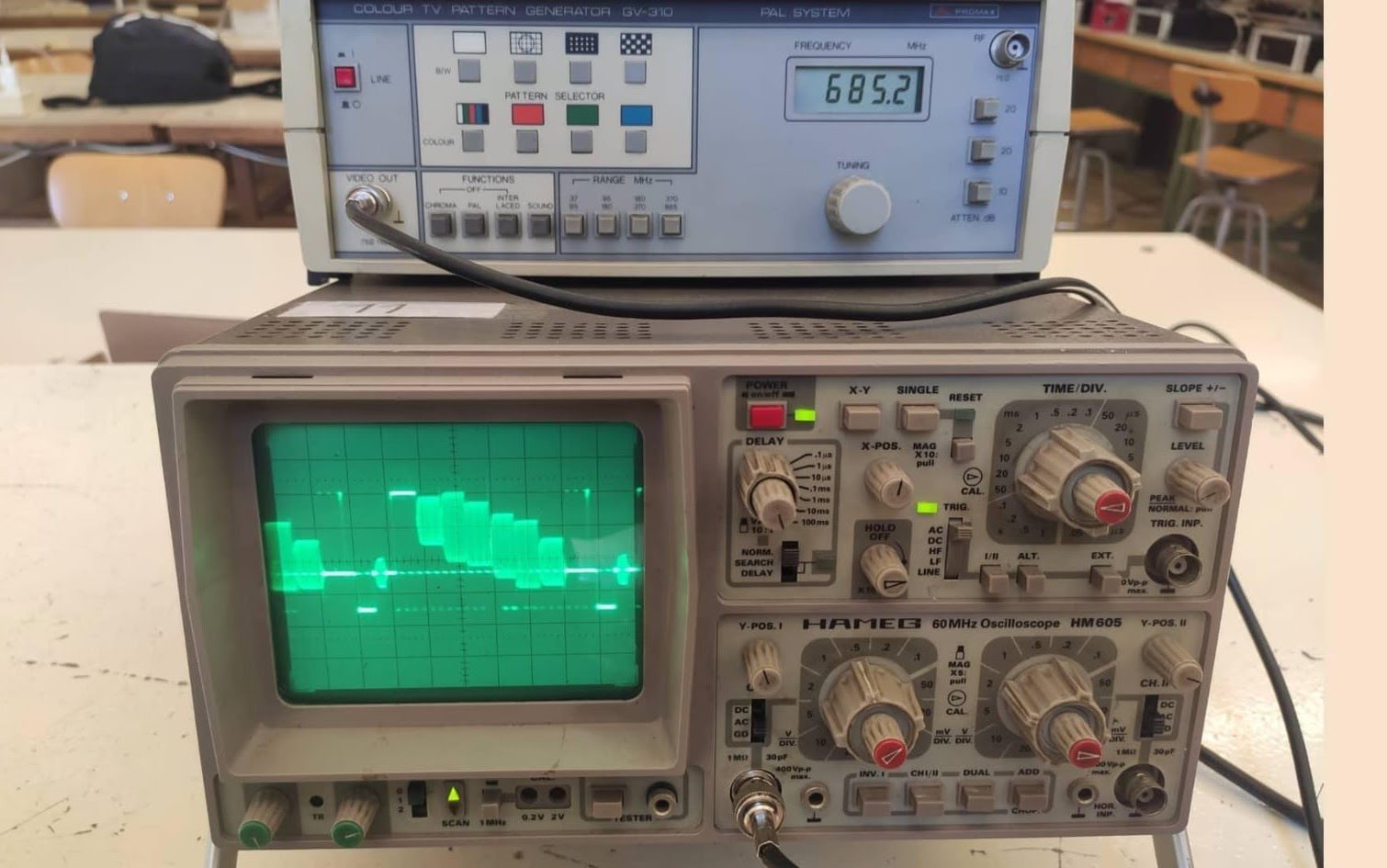 En el vídeo, un osciloscopio Promax OD-591 analizando la señal.