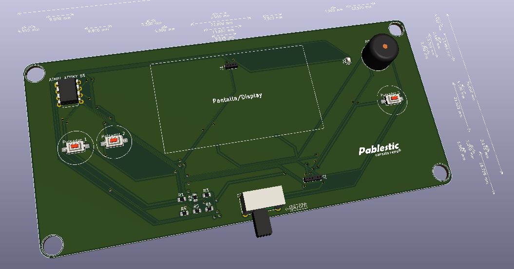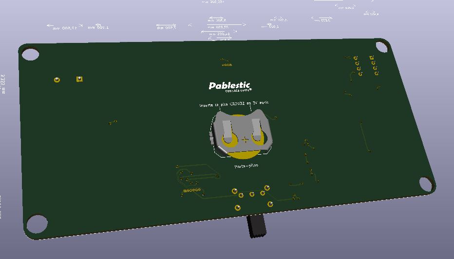 En la imagen, vista de la videoconsola en visor 3D del pcbnew diseñado por Pablo Corrales Gualda.