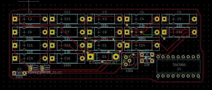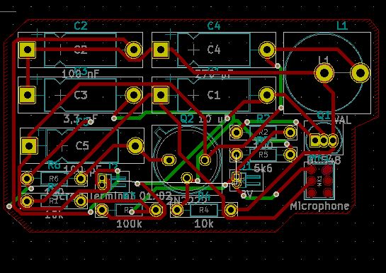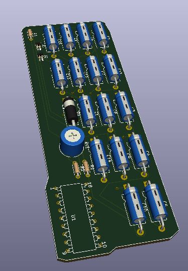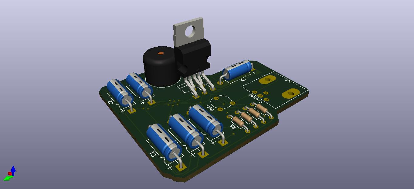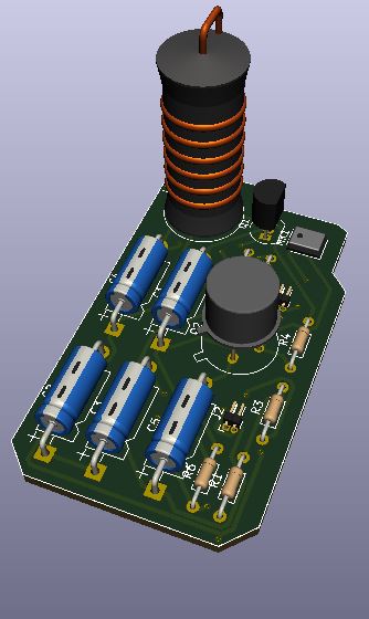 En la imagen, vista de un emisor de radio AM en visor 3D del pcbnew diseñado por Pablo Corrales Gualda.