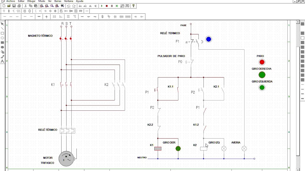 En la imagen, vista de un diseño de un automatismo con sus correspondientes circuitos de fuerza y de mando.