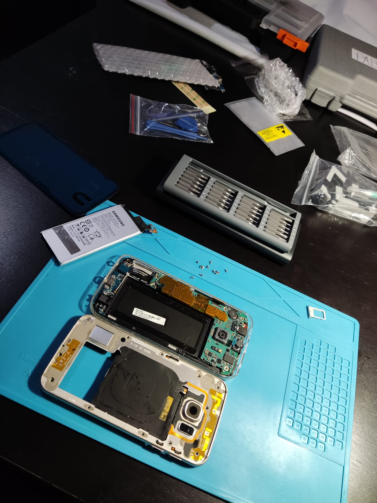 En la imagen, vista de la reparación de un Samsung Galaxy S6 Edge por Pablo Corrales Gualda.